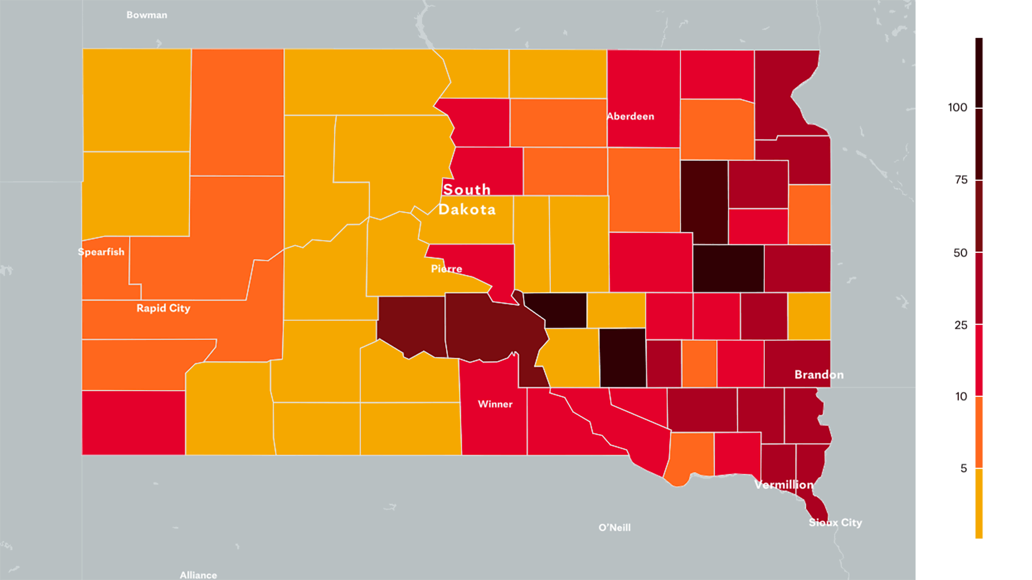 Click on a state to see how many vaccines have been administered and you can drill down to the county level and see a bar chart that tracks the running total. Darker counties have higher rates. Get additional COVID-19 vaccine updates and find a provider by visiting CDPHEs website at covid19coloradogov.