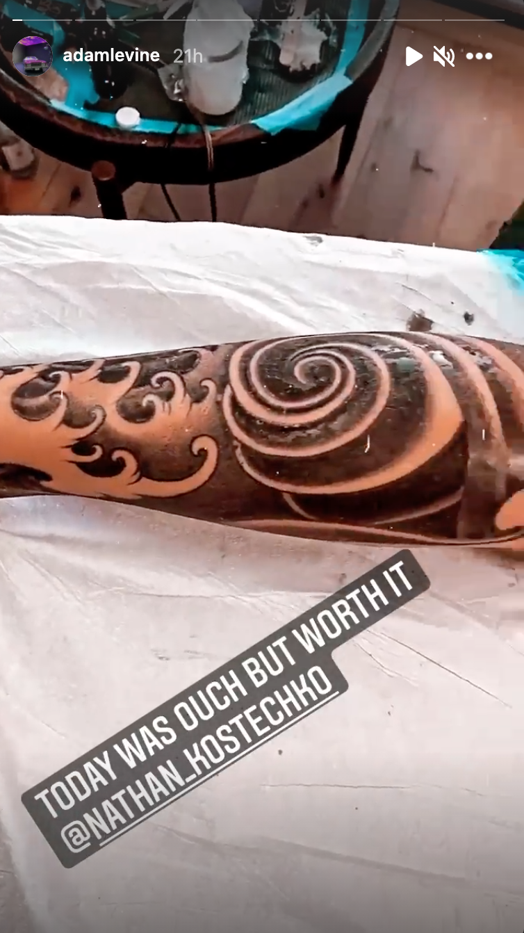 . Adam Levines new inking is complete. The Maroon 5 singer 42 whos renowned for his array of body art unveiled the finished result on Instagram. While promoting the brand new Calirosa Tequila at an Architectural Digest party at Art Basel Miami on Wednesday December 1 2021 Adam Levine.